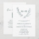 O Elegante Monograma Botânico Wreath QR Code RSVP Rich Forest Green no Convite de Casamento Branco... A frente do nosso convite de casamento para monogramas elegante apresenta uma coroa de louros botânicos folhetos mostrando as iniciais da noiva e do noivo acima do texto de convite personalizado em sorse verde de floresta rica e sans serif typografia em um fundo branco nítido. O verso branco do convite exibe o código QR do seu site de casamento, bem como o próprio URL do site, permitindo que seus convidados facilmente RSVP on-line e visualizem todos os detalhes normalmente enviados em um pacote de casamento. O exemplo de código QR e todo texto de exemplo (além dos elementos de caligrafia) podem ser facilmente revisados com suas próprias informações sobre o modelo de personalização.