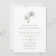Este simples convite para o casamento de praia tropical apresenta duas palmeiras no topo, com um texto elegante clássico, num esquema de cor verde-branca e sábio, com a coordenação do verde-sábio no verso.