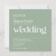Design moderno mínimo com fotografia quadrada e tipografia de tendência em fundo verde sage. O texto e a foto podem ser facilmente personalizados para um único design único para o seu dia especial.