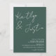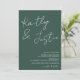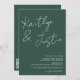 Um convite de casamento moderno, chic e elegante com nomes personalizados com caligrafia escrita à mão em branco em verde escuro. Todas as cores de texto, nomes e fundo são personalizáveis. Um convite simples e minimalista, adicione seu código qr para rsvp, detalhes e tudo em um convite.