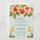 Design de convite para casamento elegante com rosas de cor vermelha, folhagem verde e fundo verde de menta macia. Perfeito para casamentos românticos, de jardim ou de inspiração floral.