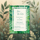 Este casamento seguro o cartão de convite vem em diferentes tamanhos, formas e papéis. É personalizável com sua Introdução, nomes e ou monogramas, ocasião, data e endereço. Mostra uma mistura harmoniosa de folhas tropicais esmeraldas verdes, monstera, folhas de palma da natureza e tem tons verdes e tipografia adequados A camada mínima de bege é para sua personalização e na parte de trás para seus monogramas. Hobinishop
