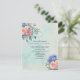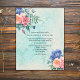 Este adorável convite para o casamento floral, com chique, apresenta um charmoso feitiço, um olhar rústico com um monte de rosas desbotados em rosa e damasco e uma bonito hidrangea azul no canto superior esquerdo, com o mesmo buquê floral no canto oposto da modelo. No fundo está um wallpaper verde desbotado. O verso do cartão apresenta o mesmo buquê floral, com espaço no modelo para o seu website de casamento (se tiver um). Se não for necessário, basta excluir esta linha no modelo de personalização.