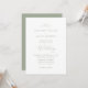 Elegante minimalista convite para casamento verde de sábio com um roteiro moderno. Personalize facilmente estes convites de casamento verdes modernos com seus detalhes de casamento. Escolha perfeita para o seu verão clássico, ou festa de casamento outono.