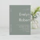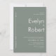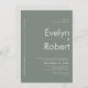 Este convite de casamento verde elegante e minimalista é perfeito para um casamento clássico. O design apresenta uma bela fonte em um fundo verde para embelezar seu evento.
