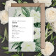 Elegante tema do casamento clássico com design botânico verde-floral branco com texto preto.