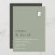 Simples, moderno, minimalista, contemporâneo, convite de casamento verde sábio com monograma no canto superior direito e nomes de cheio no verso.