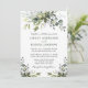 O Cartão de Convite para Casamento de Cores Biológicas Elegantes Modernos inclui folhas de eucalipto, folhagem botânica verde, folhas azuis empoeiradas e outros belos lençóis botânicos. Verdes.