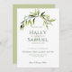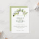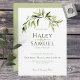 Este convite para o casamento faz parte das cartas do "Greenery Bough Invitation Suite" criadas pela "Simply Farmhouse Press". A sua folhagem verde simples e moderna passa por cima do seu anúncio e permanece sozinha como o único ornamento no cartão. Simples e elegante, ele pode ser usado para casamentos formais, semissformais ou casuais.