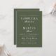Simples e elegante convite de casamento verde e branco com tipografia clássica.