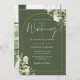 Este elegante convite de casamento botânico verde-oliva floral de arco de ouro pode ser personalizado com suas informações em tipografia chica com sua foto especial no verso. Projetado por Thisnotme©