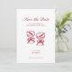 O Casamento Vermelho da Caligrafia Moderna Salve o Convite de Data é a forma perfeita de anunciar seu dia especial no estilo. Projetada para casais que adoram estética ousada, elegante e eterno, esta placa salva-vidas apresenta uma paleta vermelha impressionante, emparelhada com uma caligrafia moderna graciosa. A design contemporânea, ainda romântica, captura a entusiasmo do seu próximo casamento enquanto define o tom perfeito para o seu grande dia. Criado com sofisticação em mente, essa Salva a Data é ideal para casais que querem dar uma primeira impressão duradoura. Quer você esteja planejando um casamento na cidade quic, uma celebração romântica de vinhedo, ou um evento de salão de baile, esta design complementa uma variedade de temas de casamento. A caligrafia que flui adiciona um toque suave e pessoal, enquanto a matiz vermelha profunda simboliza o amor, a paixão e o compromisso. Impresso em estoque de cartão de alta qualidade, esse Convite para Salvar a Data garante durabilidade e um toque luxuoso. Sua design minimalista, mas impactante, permite uma fácil personalização com seus nomes, data do casamento e local, fazer única. Compartilhe a alegria do seu próximo casamento com amigos e familiares enviando esta na moda e um anúncio sofisticado.