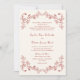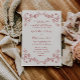 Elegante convite para casamento de arte floral vintage com um criminoso vermelho rústico chinoiserie moldura ornamental design e letra manuscrita branca.