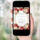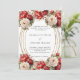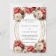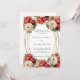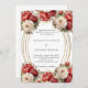 Um fundo branco decorado com rosas vermelhos e brancos, florais. Uma falsa estrutura oval dourada. Personalize e adicione seus nomes e detalhes.