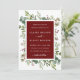 Este convite para o casamento de Natal apresenta a cor d'água de bagas vermelhas, ramos de pínus, eucalipto, folhas verdes e uma estrutura retangular com fundo vermelho no verso. Para personalização mais avançada deste design, clique no link "Personalizar mais". Itens correspondentes também estão disponíveis.