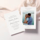 Este elegante convite de casamento apresenta fontes modernas de serifa e roteiro que seus futuros convidados irão adorar. Esta modelo também apresenta um verso bíblia adorável nas costas. Você também pode adicionar uma foto e o nome do casal no verso, junto com o site do casamento para um olhar saudável, moderno e clássico. Perfeito para um tema de casamento elegante.