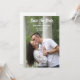 Casamento Vertical Salve a Data. Um cartão romântico que inclui data, localização e um aviso de convite formal a seguir. Estilo horizontal disponível no meu compro de perfil Zazzle.