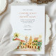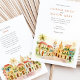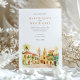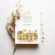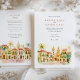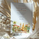 Traga seus convidados para as ruas românticas de Cartagena, Colômbia, com este convite de casamento de cor d'água. A trabalho de arte capta lindamente a essência desta cidade colonial histórica, mostrando seus icônicos edifícios coloridos em tons de amarelo quente, laranja rico, terracota vibrante e toques de azul-lacrimogênio. Telhados distintos, vermelhos e laranja, cortam as estruturas, enquanto portas e balcões de madeira charmosos, enfeitados com plantas verdes e peludas e folhagem à deriva, aumentam o fascínio da cena. Palmeiras verdes proeminentes se movem suavemente, moldando a vista, que inclui as torres típicas da igreja com suas cúpulas em tons quentes, todas feitas em um estilo macio e convidativo de aquarela. Este convite é perfeito para um casamento de destino vibrante ou para casais que amam o charme e o calor da cultura latino-americana. A frente apresenta elegantemente seus detalhes de casamento, enquanto o lado inverso oferece "Os Detalhes Mais Finos" para informações de convidado. A paleta de cores é uma mistura alegre de amarelos quentes, laranjas, vermelhos terracottas, vários tons de verde-verso para palmeiras e outras folhagens, brancos cremosos e tons suaves do céu.