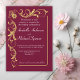 Este elegante convite de casamento com sotaques vitorianos é perfeito para casais que buscam destacar o contraste de cor do eterno em seu esquema de cores. Os detalhes do seu evento são mostrados em fontes contemporâneas ao lado de uma opulente fronteira vitoriana com bestas intrincadas de videiras e um ousado pano de fundo de cor de vinho. Como o gosto de uma bebida nova e deliciosa, seus convites elegantes de casamento podem dar uma doce e duradoura impressão. Este convite é excelente para um casamento formal. O estilo e a cor das fontes podem ser alterados para qualquer estilo e cor desejados clicando no botão "personalizar". As imagens no verso são removíveis.