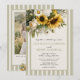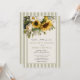 Este conjunto de convite de casamento de girassol combina lindamente o design floral romântico com um toque personalizado e moderno, tornando-o a escolha perfeita para casais que planejam uma celebração elegante e calorosa no campo. Com uma exuberante disposição de girassóis dourados, rosas marfim suaves, flores brancas delicadas e folhagens naturais, este convite de casamento botânico captura a essência de um casamento de verão ou início de outono com uma estética refinada, leve e arejada. O fundo creme suave e a borda listrada em verde sálvia adicionam um detalhe sutil inspirado no vintage, mantendo o design geral limpo, fresco e atemporal.