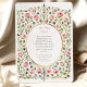 Entra num jardim encantado com este convite de casamento romântico. Inspirada pela beleza eterno do movimento Artes e Artesanatos, esta design apresenta uma intrincada e esmagadora borda aquarela de delicadas rosas, gemas cor-de-rosa e tecendo graciosamente videiras verdes. O padrão denso e simétrico cria uma tapeçaria mágica que lembra um conto clássico de fadas. Um quadro circular simples e elegante em uma matiz de azeitona macia fornece uma janela perfeita para seus detalhes personalizados de casamento, que são exibidos em uma sofisticada mistura de fontes clássicas e de script. Este convite é uma excelente escolha para um jardim romântico, vintage, ou casamento temático de conto de fadas, estabelecendo um tom de elegância e beleza duradouras para o seu dia especial.