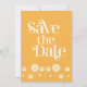 O Retro Casamento vintage Save The Date Invitation irradia alegria com suas matizes amarelas brilhantes e sotaques florais divertidos, criando um anúncio ousado e exclusivo para seu dia especial. Apresentando tipografia retrô de ranhura, este convite captura a essência do charme de vintage enquanto permite uma fácil personalização — se você precisar de alguma assistência para torná-lo seu, apenas me avise!