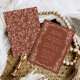 Apresente seu dia inesquecível com nossos belos convites de Casamento Vitoriano Terracotta Vintage. Acentuados por um elegante impressão floral cor de laranja queimado, estes convites trazem o charme floral vintage direto para os seus dedos. Projetada com um eterno e uma estética clássica, esta suite de papelaria de casamento certamente encantará seus convidados a partir do momento em que eles abrirem o envelope. Uma paleta clássica de terracota contrasta maravilhosamente com padrões florais vintage, estabelecendo um palco alarmante para os detalhes do seu dia especial. Cada um desses convites é lindamente projetado e meticulosamente feito, garantindo um anúncio extraordinário que ecoa o amor e a alegria de sua próxima união. Com um design clássico que transcende tendências, este é um convite que será apreciado por vocês e seus convidados pelos próximos anos.