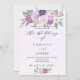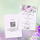 Um fundo violeta, lavanda, de cor aquosa. Decorado com flores violetas e púrpuras de cor aquosa e verde. Personalize e adicione seus nomes e detalhes da festa. Voltar: adicione o URL do seu site de casamento ao código QR para obter detalhes e/ou RSVP.