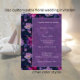 Este convite de casamento vem em diferentes tamanhos, formas e papéis. Ele é personalizável com sua Introdução, nomes e ou monogramas, ocasião, data, endereço e outros além de um fundo azul marinho. Mostra uma mistura harmoniosa de flores silvestres coloridas florais e verde-coloração aquosa. O mínimo transparente e congelado violeta e camada lilás é para sua personalização. Incêndio no esplendor real de um casamento de flores silvestres inspirado em violeta. Os sotaques roxos ricos em meio a uma exuberante verde colocaram a palco de uma grande celebração que exumenta a opulência e a sofisticação. Hobinishop