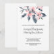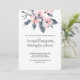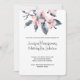 Um convite de casamento virtual com uma bela ilustração em aquarela de flores rosa com folhas cinzas em um único caule. Um design botânico moderno e elegante. Fundo branco.