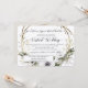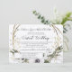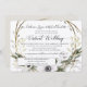 "Floral Wreath Rustic Cinza White Virtual Wedding Invitation." Quando é hora de seguir em frente juntando suas vidas e você decidiu fazê-lo virtualmente, aqui está um convite que pode ajudar seus familiares a navegar maravilhosamente no processo. Flores de aquarelas com flores brancas de anêmona, eucalipto de terra e folhagem de folha de azeitona, verde-sábio e ramos salgueiros de cinza de maricas formam uma coroa. A cinza quente e úmida do lado oposto dá uma sensação etérea a este convite de casamento. Criada e projetada pela artista internacionalmente conhecida e licenciada Audrey Jeanne Roberts. Direitos autorais.