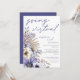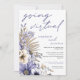 Por momentos em que você não pode se reunir pessoalmente, convidar seus convidados para comemorar com você via streaming online é a próxima melhor coisa! Aqui, os florais roxos e lilases de aquarelas modernos e a borda foliar do lado esquerdo, com um roteiro elegante em direção ao virtual e à tipografia em na moda, alinhados ao lado direito. As costas estão numa sombra coordenadora de roxo.