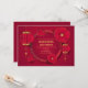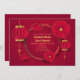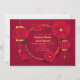 Convites de casamento virtuais com lanternas profundas vermelhas do globo chinês e flores com realces dourados.