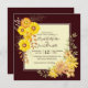 Convite de casamento virtual russo no outono com rosas amarelos de manteiga e flores com sábio e folhas marrons em fundo de burlu.