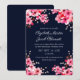 O design de convite para casamento virtual apresenta cereja cor-de-água rosa floresce em um fundo azul escuro.
