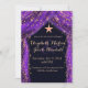 Convite para casamento virtual! Cortina roxa e luzes cintilantes lançam o palco de um casamento mágico em árabe Noites. Parte da festa da Noite Árabe.