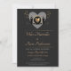Um convite de casamento virtual com uma design de dois noivos, de cada lado de um coração de ouro. (Os elementos ouro são ouro falso e não folha de ouro.)