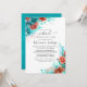 Turquesa espanhola - cartão virtual de convite de casamento para rosas de chá e corais projetado para ser rápida e facilmente personalizado de acordo com as suas especificidades de evento.