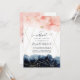 Convite online de cerimônia virtual de casamento de longa distância, com marinho azul e pinceladas de tinta cor-de-água rosa e um quadro geométrico dourado.