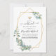 Floresta eucalipto verde de longa distância convite de casamento virtual com estrutura geométrica dourada personalizável para suas especificidades de evento.