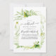Verde-d'água em linha, convite virtual para casamentos de longa distância com samambaias, flores silvestres e morangos e um fundo de lavagem de cor verde-d'água.