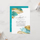 Convites Casamento Virtual Online Tropical Teal e Dourado