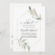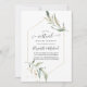 Um convite para cerimônias virtuais de casamentos de longa distância em tons pastéis com moldura geométrica de ouro personalizável para suas especificidades de evento.