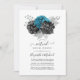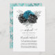 Turquesa rustica (teal), flor de brilho preto e prateado falso em forma de prata online convite virtual para casamento de longa distância com uma cor damasco floral vintage que pode ser usada para detalhes de seu evento.