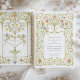 Inspirado pelo papel de parede vintage e pela arte botânica vitoriana, este convite de casamento mostra uma fronteira floral opulente com andorinhas elegantes e intrincadas obras de escrolagem de ouro. A estrutura de aquarela detalhada se rompe com flores silvestres pastéis — margaridas, anêmonas e glórias matinais — tecidas em torno de flores graciosas de ouro e cipós macios. Dois pássaros encantadores se aproximam graciosamente do topo, adicionando um toque de romance e movimento. O layout central apresenta tipografia serif clássica com delicados acentos de escrita, e o dorso é totalmente decorado em um padrão floral barroco sem costura, perfeito para adicionar impacto visual ou sobreposições de texto opcionais. Com seu rico estilo ornamental e paleta de mola macia, esse convite é ideal para casamentos elegantes de jardins, eventos de temas florais ou casais desenhados para estética histórica e opulência decorativa.