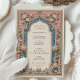 Este luxuoso convite de casamento vitoriano apresenta um design ornamentado com rosas cor-de-rosa macio, delicadas margaridas brancas e folhas verdes esmagadas emolduradas emolduradas emolduradas por intrincado filigre de ouro. A combinação harmoniosa de um fundo pastel rosa e azul real adiciona um toque regal, mas romântico, ao design. Perfeito para casais que buscam uma papelaria de casamento inspirada em vintage que exude elegância, sofisticação e charme de eterno.