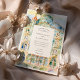 Convide seus convidados para uma celebração verdadeiramente memorável com este maravilhoso convite para o casamento, com uma ilustração cativista da icônica arquitetura de Barcelona, que lembra a obra-prima de Gaudí, Casa Batlló. A frente do cartão mostra a fachada química do edifício, com as suas linhas onduladas distintas, azulejos de telhado tipo mosaico em tons de azul, verde e terracota, e janelas e balcões únicos, em forma orgânica. A técnica suave e fluente de aquarela dá vida aos detalhes arquitetônicos, criando um sonho e uma impressão artística contra um céu azul pálido. O reverso, projetado para "Os Detalhes Mais Finos", continua o tema arquitetônico, oferecendo uma perspectiva ligeiramente diferente do edifício encantador, permitindo que mais da estrutura única e dos elementos circundantes, como uma árvore estilizada, sejam vistos. Este convite é perfeito para um casamento de destino em Barcelona, uma celebração temática de arquitetura, ou para qualquer casal que aprecie arte, design única, e um toque de elegância caprichosa para o seu dia especial.