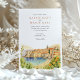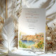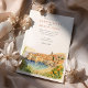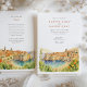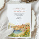 Convide seus convidados para um casamento no paraíso com este belo convite à aquarela apresentando a maravilhosa cidade murada de Dubrovnik, Croácia. A frente apresenta uma visão pitoresca da Cidade Velha, com seus icônicos telhados de madeira vermelha, paredes históricas de pedra, e o espumante Mar Adriático pontilhado de barcos. A cena é enquadrada por flores esmagadas e verdes e delicadas. O reverso, para "Os Detalhes Mais Finos", continua o tema com uma visão semelhante, destacando a charmosa cidade costeira e a beleza natural dos arredores. O estilo de aquarela suave dá a esta suite uma sensação romântica e eterno. É perfeito para um casamento de destino na Croácia, um verão ou uma celebração costeira, ou para qualquer casal sonhando com uma fuga europeia para o seu dia especial.