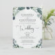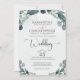 Lindos convites de casamento elegantes, com faixas aquáticas e eucalipto verde-azul com um fundo macio de lavagem aquosa, ideais para primavera, verão e casamentos outono. Entre em contato com o designer por meio do Zazzle Chat ou makeitaboutyoustore@gmail.com se você quiser que este design seja modificado, em outro produto ou quiser coordenar itens.