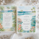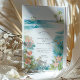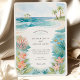 Traga a magia tropical de San Andrés para o seu casamento com este vibrante convite à aquarela. Apresentando uma paisagem litorânea sonhadora com palmeiras, ondas de turquesa, recifes de corais, e flores de ilhas exuberantes, esta design captura lindamente a elegância de "pouso" de uma celebração de praia de Caribe. Ideal para casamentos de destino na Colômbia ou para casais que amam temas tropicais inspirados no oceano.